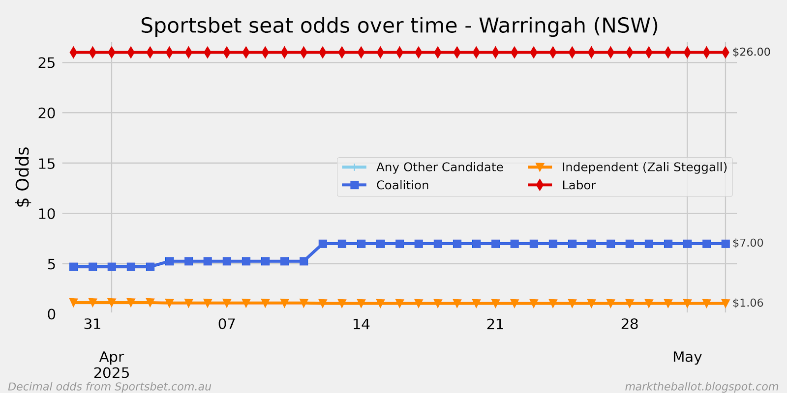 For each seat over the campaign, the odds and probabilities were as follows. We will start with the odds. You can jump to the probabilities.